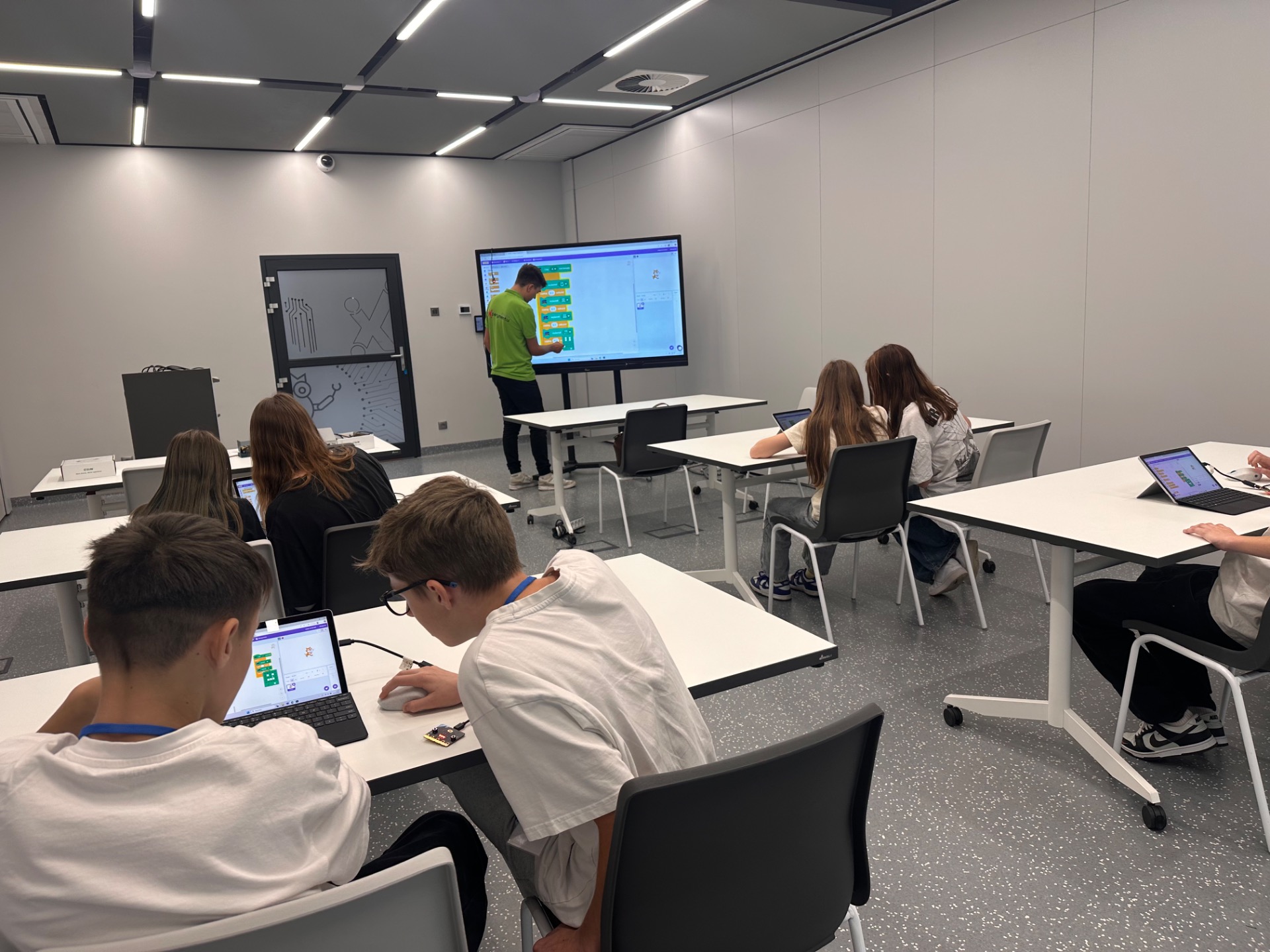 👩💻👨💻 Dzieciaki z entuzjazmem testowały swoje pomysły, a efekty można było zobaczyć (i usłyszeć!) w praktyce.