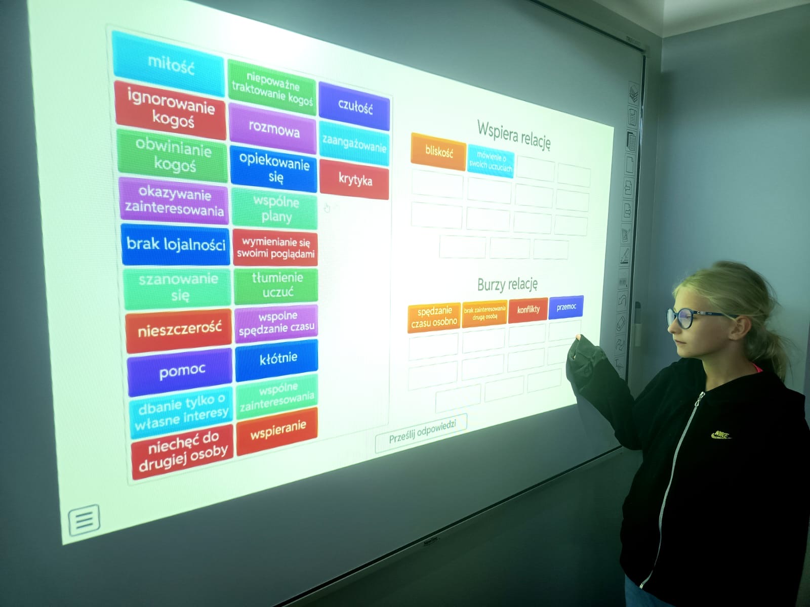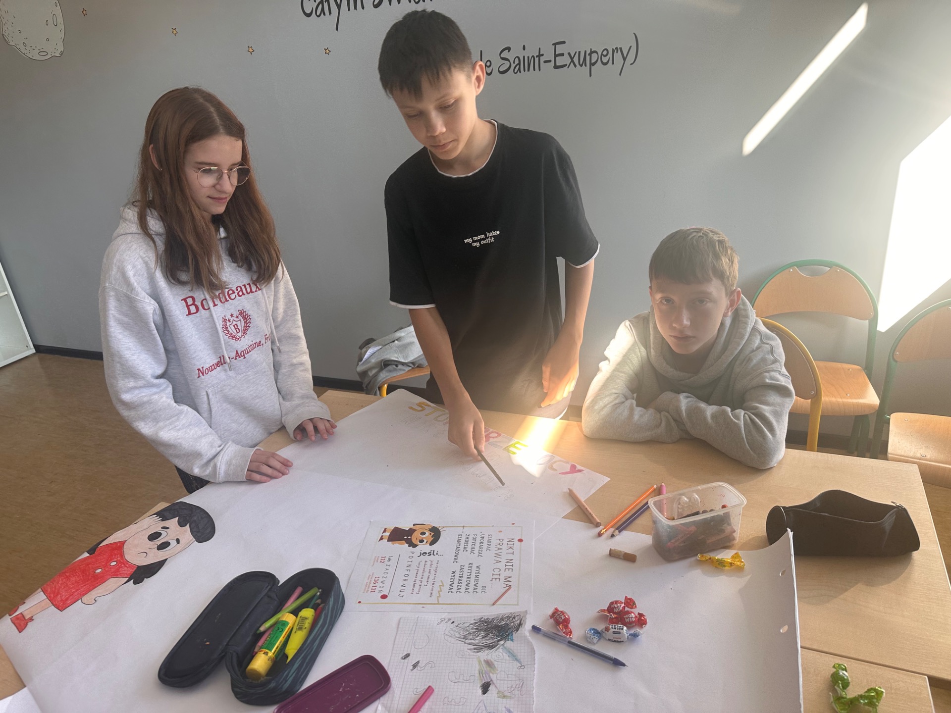 Podczas lekcji wychowawczych podejmowaliśmy różne działania, rozmowy i ćwiczenia, które miały na celu zwiększenie empatii, zrozumienia i wzajemnego szacunku. Uczniowie uczestniczyli również w zajęciach prowadzonych przez szkolnego psychologa – panią Karolinę.
