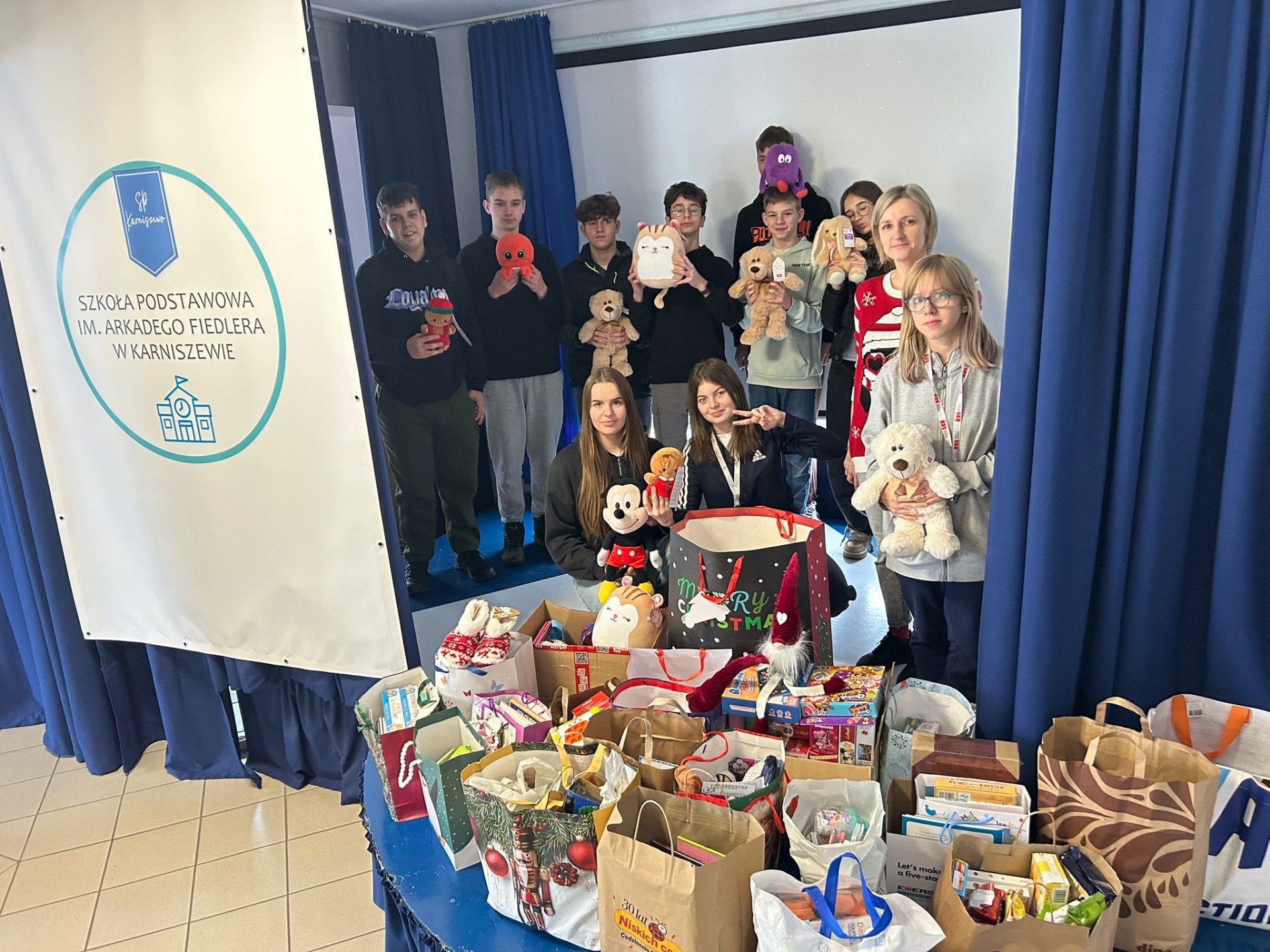 Dziś scena w naszej szkole wypełniła się zebranymi prezentami🎁🧸🧩 Każda zabawka trafi do dziecka przebywającego w szpitalu, by dodać mu odrobiny radości w trudnym czasie walki z chorobą nowotworową. Z całych serc dziękujemy wszystkim rodzicom, dzieciom, pracownikom szkoły za udział w zbiórce PAN TADEUSZ KONTRA NEUROBLASTOMAPAN 🩵 ❤️ ❤️